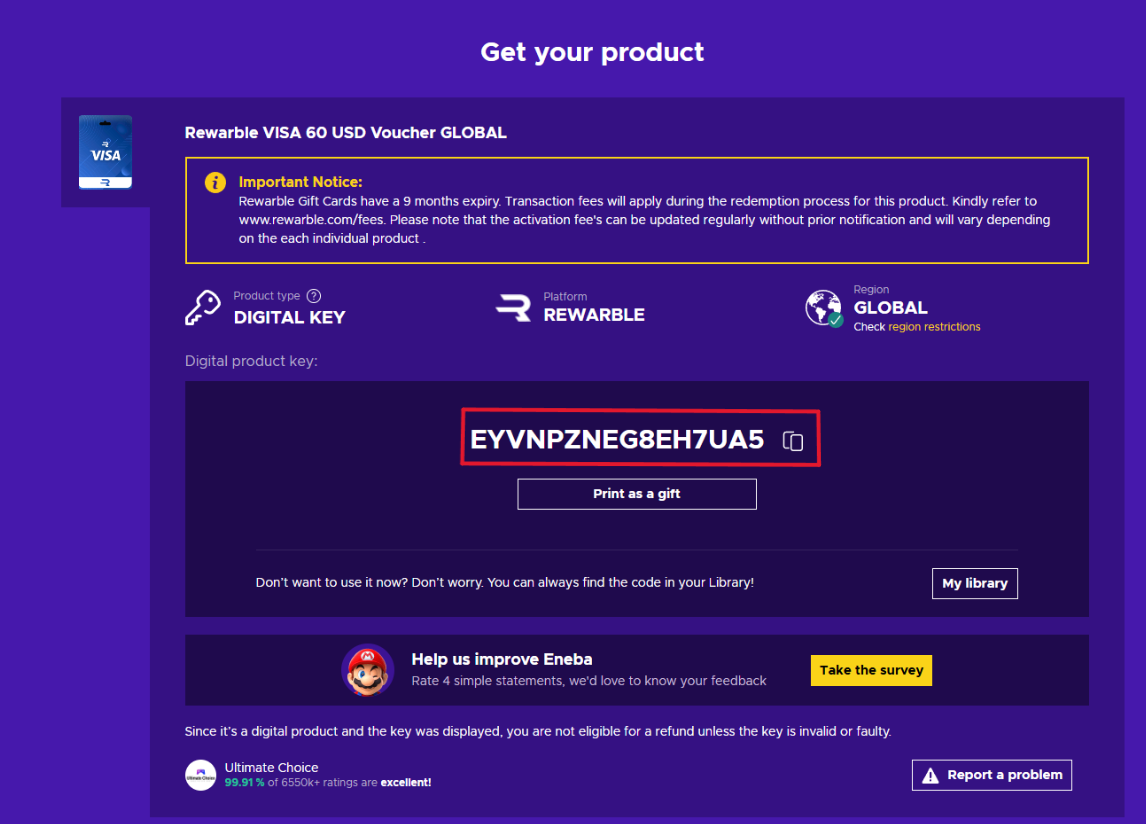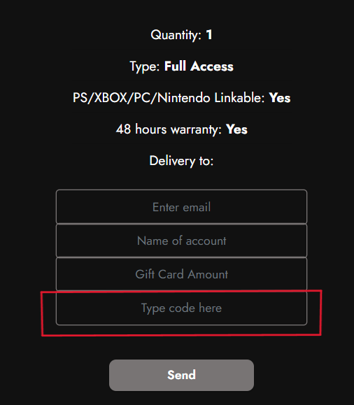 Step 4: Enter the code from the gift card in the red box shown in the picture, fill in the other information, and then click "Send"